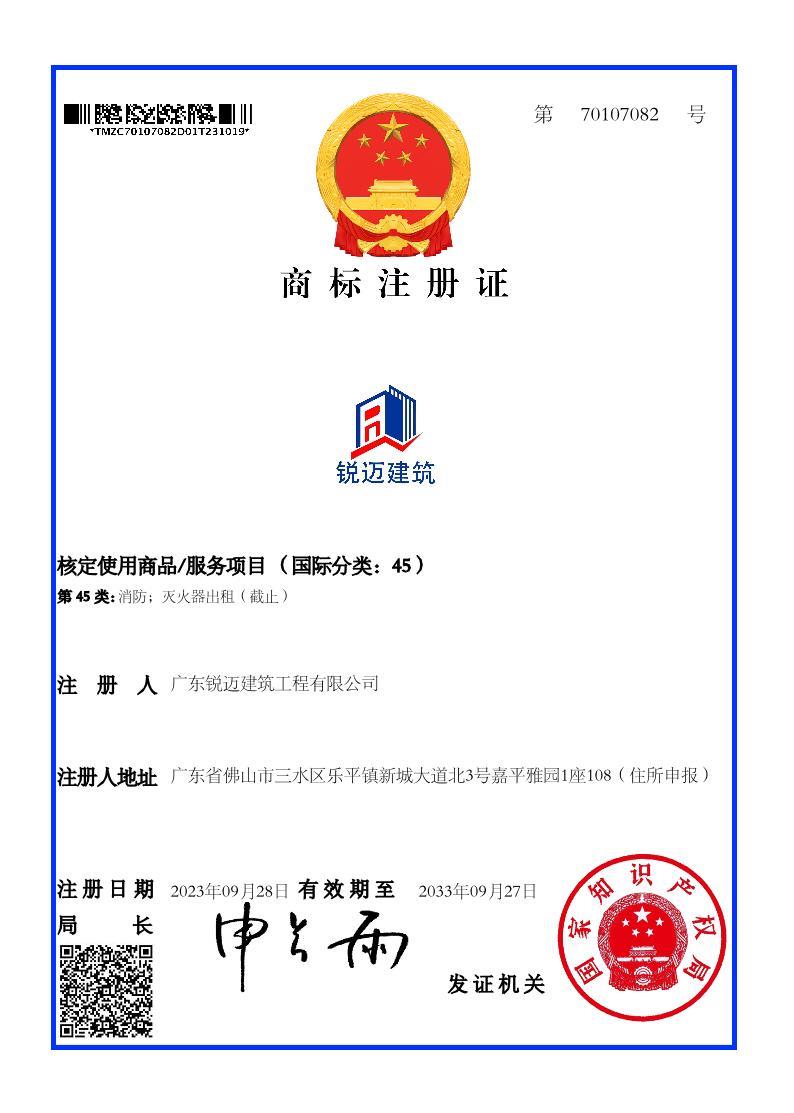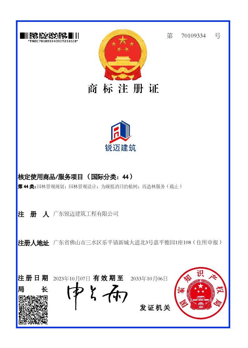 熱烈祝賀我司成功獲得“銳邁建筑”商標(biāo)的國家商標(biāo)局核準(zhǔn)注冊證書